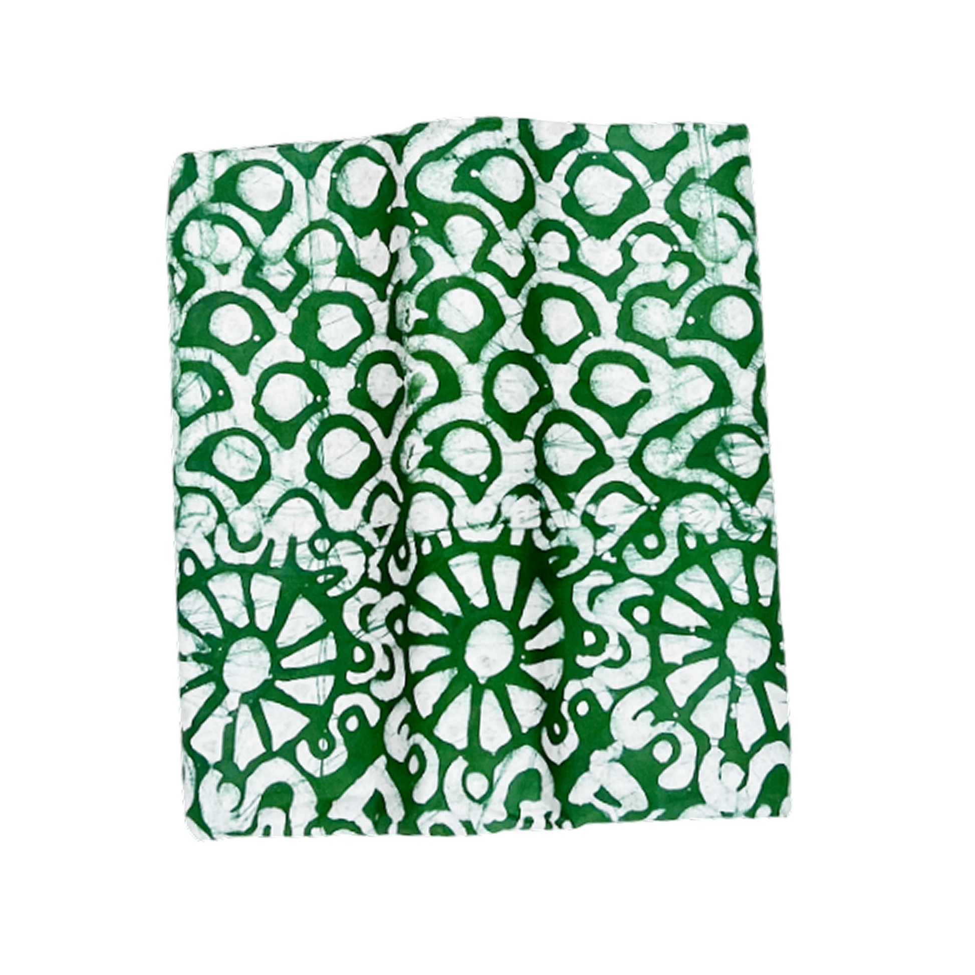 This traditional Adìrẹ batik fabric showcases a striking green and white pattern, hand-dyed using authentic wax-resist techniques. Its bold and beautiful design makes it ideal for dressmaking, accessories, and a wide range of sewing projects.